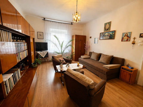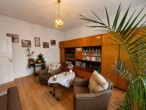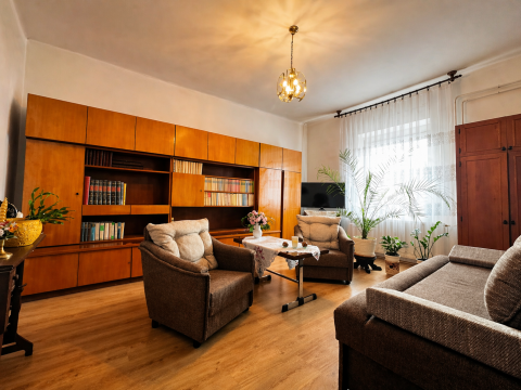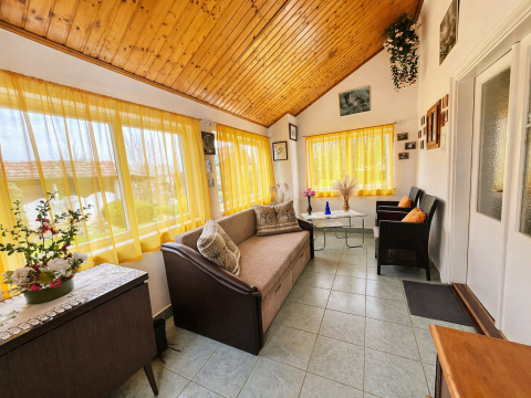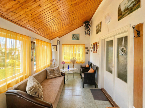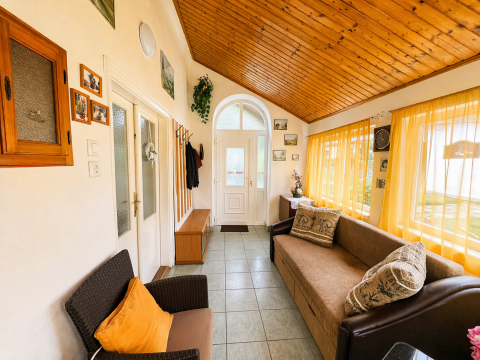 A 80 négyzetméteres lakóházba egy tágas, napfényben úszó beépített verandán keresztül lépünk be, amely már érkezéskor megalapozza az otthon barátságos atmoszféráját. A közlekedőből külön mosdó és fürdőszoba nyílik, majd egy világos, arányos méretű konyhába érkezünk, amelyhez praktikus kamra is kapcsolódik. Innen két, egymásból nyíló, egyenként 24 négyzetméteres, kifejezetten tágas szoba érhető el; a laminált parkettával burkolt helyiségek világosak, jól berendezhetők, harmonikus életteret biztosítanak.