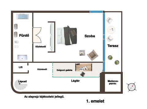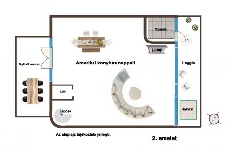 2. emelet (50,6 m²): A közösségi élet és a kikapcsolódás szintje.