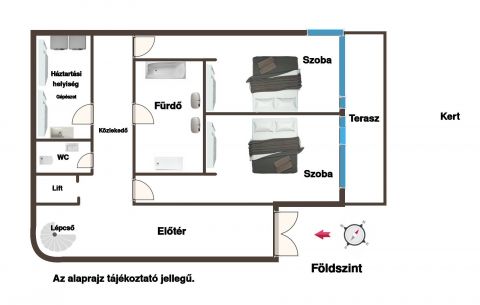 Két kényelmes hálószoba és egy tágas fürdőszoba.