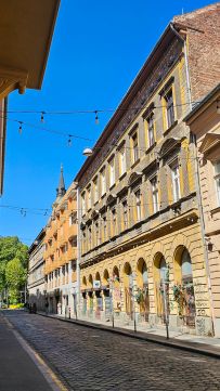 - a megújult, macskaköves Csányi utcában